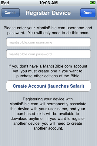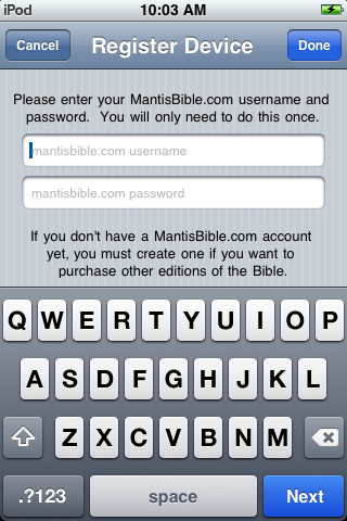Step 3: Tap in the "mantisbible.com username" field